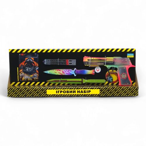 Дитячий ігровий набір “BIG BOX” – ідеальне рішення для любителів активних ігор та безпечних баталій! Особливо набір сподобається фанатам ігор CS:GO та Counter-Strike 2. У комплект входять: деревʼяний резинкостріл (гумкостріл) з резинками, тренувальні сувенірні ножі, тактичні рукавички та стильний брелок. *Забарвлення може відрізнятися від вказаного на фото.