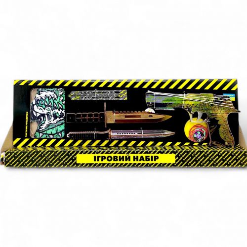 Дитячий ігровий набір “BIG BOX” – ідеальне рішення для любителів активних ігор та безпечних баталій! Особливо набір сподобається фанатам ігор CS:GO та Counter-Strike 2. У комплект входять: деревʼяний резинкостріл (гумкостріл) з резинками, тренувальні сувенірні ножі, тактичні рукавички та стильний брелок. *Забарвлення може відрізнятися від вказаного на фото.