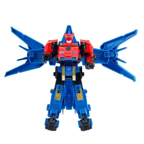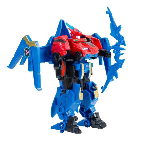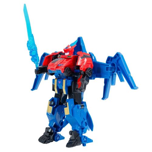 Комплектація: 1 робот, який трансформується у 2 машинки; 2 машинки, які трансформуються в 1 робота; 4 одиниці іграшкової зброї; 2 фігурки динозаврів; наліпки;