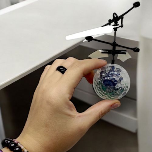 Індукційна іграшка “Літаюча куля”. Літаюча іграшка, управляється долонькою. Необхідно піднести руки до датчика (знизу фігурки), і іграшка буде слідувати за нею, піднімаючись і опускаючись. Оснащена яскравими світловими ефектами.