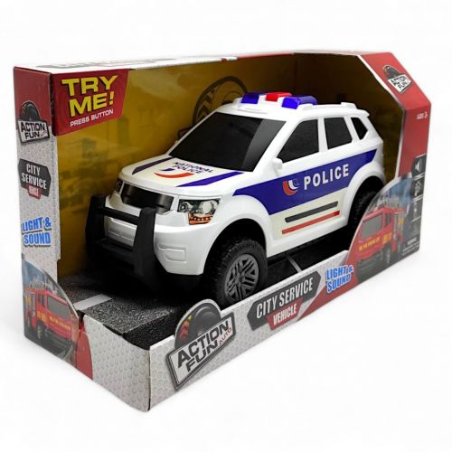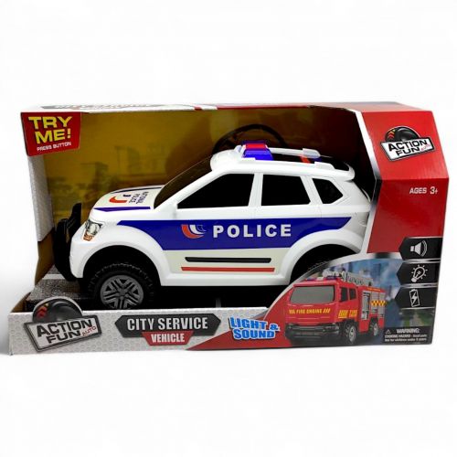Машинка “Поліцейська” є ідентичною реплікою справжньої поліцейської машини – грання з якою навчить дитину як вони працюють у справжньому світі. Інерційна, оснащена звуковими ефектами (звуки двигуна, сирена) та підсвічуванням мигалок.