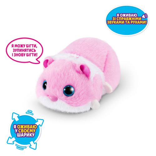 Маленький інтерактивний хомʼячок у кулі Pets Alive. Увімкніть його, і він почне бігати у різні сторони, наче справжній. Більше 21 різних милих звуків та реакцій, як у справжнього хомʼячка. Мʼяке, приємне на дотик хутро. Може бігати у своїй прозорій кулі або без неї, а при попаданні в перешкоду розвертається і обходить її. Розмір іграшки – 4,5 х 8,5 см. Працює від 2-х батарейок ААА (немає в комплекті).