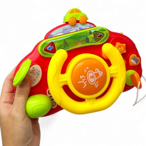 Берімо кермо в руки та вирушаймо в чарівний світ музики, звуків авто та тваринок! Кнопки з важелем та елементи іграшки дозволяють дитині розвивати фантазію та дрібну моторику рук, адже в процесі гри малюк тренує пальчики. Варто натиснути кнопку керма — пролунає весела пісенька. А що як захочеться послухати пісеньку чи потренуватись вивчати сторони та правила руху? Просто натисніть відповідні кнопки й насолоджуйтесь! В іграшки є реалістичні звукові ефекти. Виготовлена з якісного та безпечного пластику, немає гострих кутів.