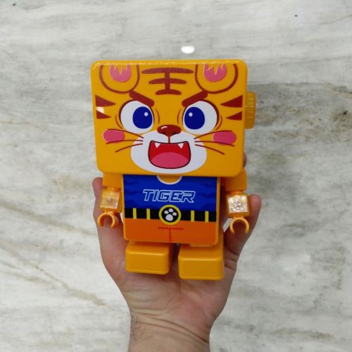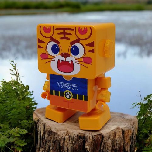 Тигр, що танцює – весела інтерактивна іграшка, яка підніме настрій! Він перебирає ніжками вліво та вправо, смішно рухає лапками та співає пісні англійською мовою. Яскраве підсвічування робить гру ще цікавіше. Іграшка має два режими роботи: тільки підсвічування чи весь функціонал – музика, танець та світло. На голові крутилки-тріскачки. Розмір – 15 см. Працює від 3-х батарейок АА (немає в комплекті).