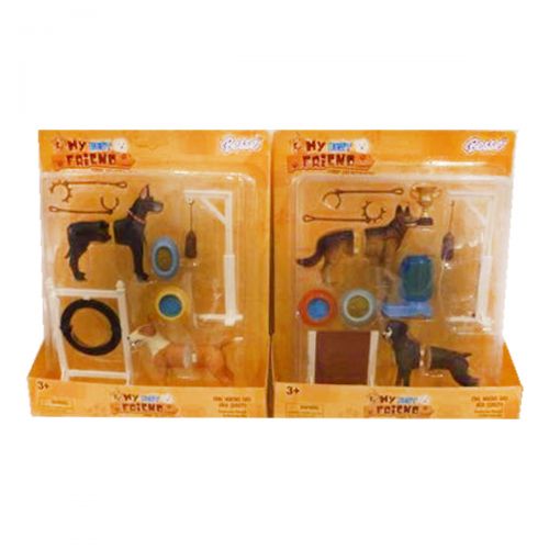 4D пазл “Собаки”. 4 види. Кожна собака складається з 2-х десятків елементів. Крім 2-х собак, в комплект входять різні аксесуари для гри: тарілочки, поводок, кубок, різні тренажери для собак.