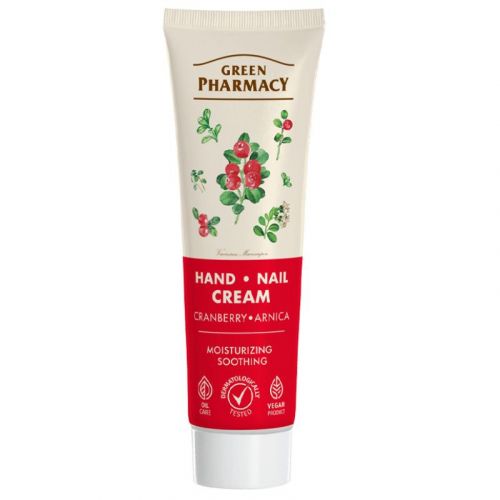 Крем Green Pharmacy Hand and Nail Cream Cranberry надає зволожувальну дію на шкірний покрив завдяки гліцерину, який довгий час утримує вологу в клітинах. Пантенол у складі продукту заспокоює епідерміс, а вітаміни А і Е зміцнюють та розгладжують. Ніацинамід підтримує шкіру рук молодою, пружною і ніжною. Екстракт журавлини насичує її антиоксидантами, поліфенолами і вітамінним комплексом.