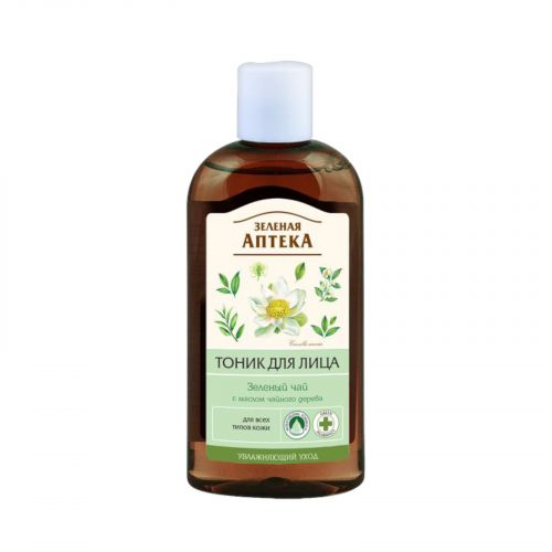 Тонік для обличчя Зелений чай. З олією чайного дерева. Тонік завершує процедуру очищення, видаляючи залишки забруднень і макіяжу, готує шкіру до подальшого догляду. Екстракт зеленого чаю — природний антиоксидант, тонізує і зволожує шкіру. Олія чайного дерева має антибактеріальні властивості, заспокоює шкіру.