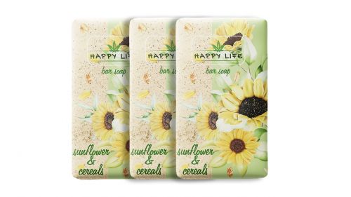 Тверде мило Happy Life створено на основі екстракту соняшника, гідролізованих протеїнів пшениці та евкаліптової олії. При взаємодії з водою утворює густу кремову піну, яка обережно очищає шкіру від забруднень, одночасно зволожуючи і пом’якшуючи її. Засіб підходить для щоденного використання, має освіжаючий аромат і забезпечує відчуття чистоти надовго.