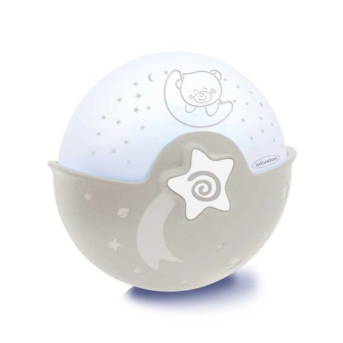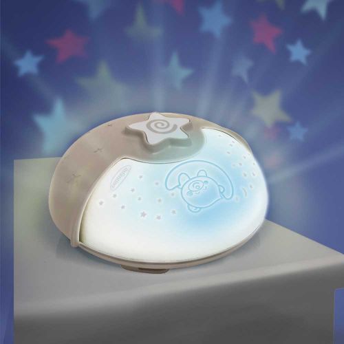 Світильник працює в 3-х режимах: Кольорове світіння з проекцією зірочок (LED), Синє заспокійливе світіння (LED), Нічник. 6 мелодій і 3 звуки природи. Інтелектуальний датчик звуку: активує синє заспокійливе світло, коли малюк ворушиться. Регулятор гучності (3 рівня) Таймер автоматичного вимкнення – 10 хвилин. Елементи живлення (3xAAA) не включені, розраховані на 40 годин автономної роботи.
