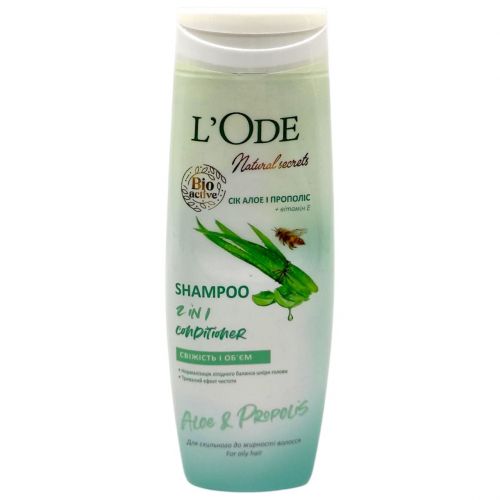 Natural Secrets від бренду LʼOde – лінійка, збагачена дарами природи. Продукти з колекції здатні відновити красу і сяйво волосся, підтримуючи ефект протягом тривалого часу. Шампунь-кондиціонер від українського бренду LʼOde подарує вашим локонам свіжість і обсяг. Він збагачений натуральним соком алое вера, прополісом і вітаміном Е. Завдяки цінним компонентам засіб не тільки очищає, але і додатково доглядає за шкірою голови і пасмами по всій довжині. Продукт забезпечує глибоке зволоження, нормалізує гідроліпідний баланс, зміцнює волосяні цибулини і насичує корисними речовинами.