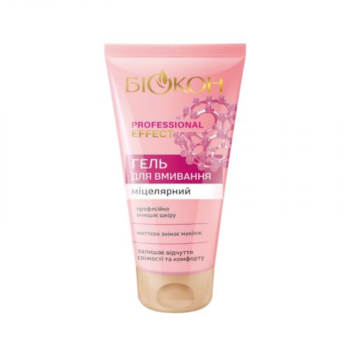 Міцелярний гель для вмивання Біокон Professional Effect містить міцели, які мʼяко очищають шкіру обличчя й шиї. Видаляє частинки макіяжу, забруднення й ороговілі клітини епідермісу. Мікросфери гіалуронової кислоти, пантенол, вітамін С, екстракти морських водоростей і алое зволожують і доглядають за шкірою, перешкоджають розвитку подразнення шкіри.Застосування: невелику кількість гелю змішайте з водою, нанесіть на зволожену шкіру обличчя, ретельно змийте.