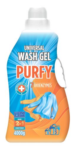 Рідкий засіб для прання тканин Purfy Universal – це продукт 2 в 1: засіб для прання і кондиціонер. Це рідкий засіб не містить фосфатів, працює при низьких температурах. До складу входить комплекс з 6 ензимів, антимікробний компонент. Рідкий засіб для прання Purfy Universal відпирає крахмаломіські залишки їжі, позбавляє від плям білкового походження, від фруктових і жирних плям, позбавляє волокна тканини від мікроворсинок, надає тканині гладкість. Ідеально чиста білизна — завдяки рідкому засобу для прання Purfy Universal. Він екологічний, не завдає шкоди довкіллю, делікатно впливає на тканини, має високу мийну здатність та надає антибактеріальний ефект. Ензими в складі засобу для прання делікатно розщеплюють і виводять на поверхню волокна будь-які типи забруднень — від білкових до органічних. Уже після першого прання на одязі не залишається жодних плям. Продукт активно впливає на будь-які види тканин, залишаючи їх м’якими на дотик.