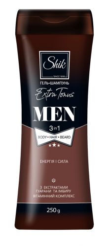 Уособлення чоловічої вишуканості і витриманого смаку— це гель-шампунь MEN. Тепер прийняття душу – не рутина, а величезне задоволення. З гелем-шампунем для душа MEN від торгової марки «Shik» ви відчуєте свіжість і чистоту тіла та волосся. Гель, який не поступається за якістю європейським аналогам, але за доступною ціною. Під час підбору рецептури особливу увагу приділили тактильним відчуттям і трендовим ароматам