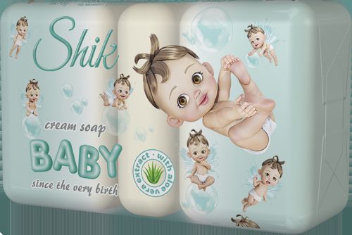 Дитяче мило «Shik» – турбота з перших днів життя! Шкіра дитини набагато ніжніша і чутливіша, ніж у дорослих, тому фахівцями науково-виробничої лабораторії підприємства було розроблено ніжне дитяче мило «Shik», що не містить барвників, з комплексом рослинних компонентів і дитячим кремом, які оберігають захисний шар шкіри дитини та забезпечують дбайливий догляд. Дитяче мило не робить алергенної дії, тому рекомендується до використання також людям з чутливою шкірою. Усім відомі екстразволожуючі властивості алое вера. Тому, завдяки екстракту цієї рослини, мило зволожує шкіру малюка, перешкоджає втраті шкірою природної вологи й має заспокійливий ефект.
