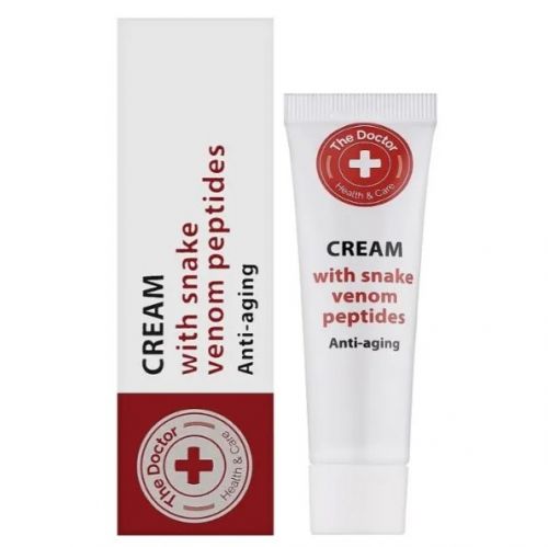 Крем для обличчя «З пептидами зміїної отрути» від бренду «Домашній Лікар» має виражену дію, що омолоджує. Він містить пептид зміїної отрути, яку називають у косметології аналогом ботоксу. У формулі крему використовується створений у лабораторних умовах пептид зміїної отрути, який відомий як Syn-ake. Це пептид-міорелаксант, він локально впливає на мʼязи обличчя, допомагаючи розслабити їх і в результаті поступово розгладити дрібні та середні мімічні зморшки, а також запобігти появі нових зморшок. Пептид зміїної отрути чудово допомагає впоратися з міжбрівними вертикальними складками, «гусячими лапками» у куточках очей, горизонтальними зморшками на лобі, а також зморшками на спинці та крилах носа. Крім того, він надає легку дію, що розгладжує, в області носогубних складок, в області шиї і в області нижніх повік. Крем з пептидом зміїної отрути має накопичувальний ефект, тому найефективніше застосовувати його курсом. За умови щоденного нанесення 2 рази на день достатньо курсу 28 днів, щоб отримати видимий результат. Надалі для підтримки отриманого ефекту, як правило, достатньо використовувати крем кілька разів на тиждень. Спосіб застосування – нанести на чисту шкіру легкими рухами масажними лініями.